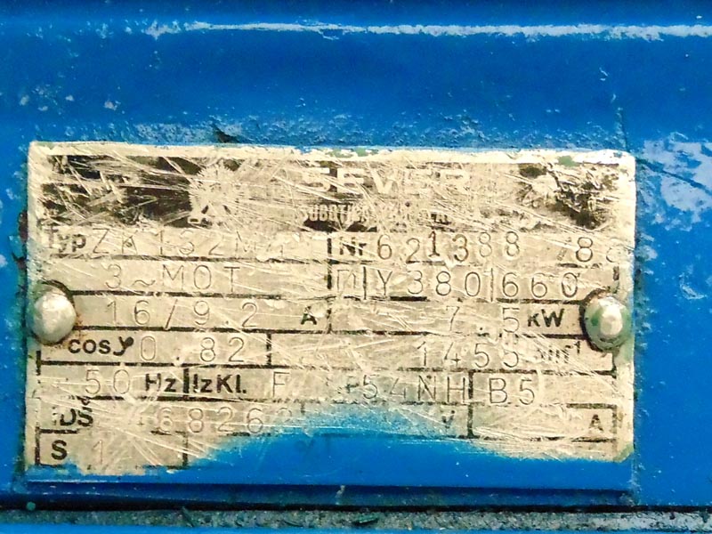 Snaga motora 7,5 KW (10 KS), brzina 1455 ob/min.