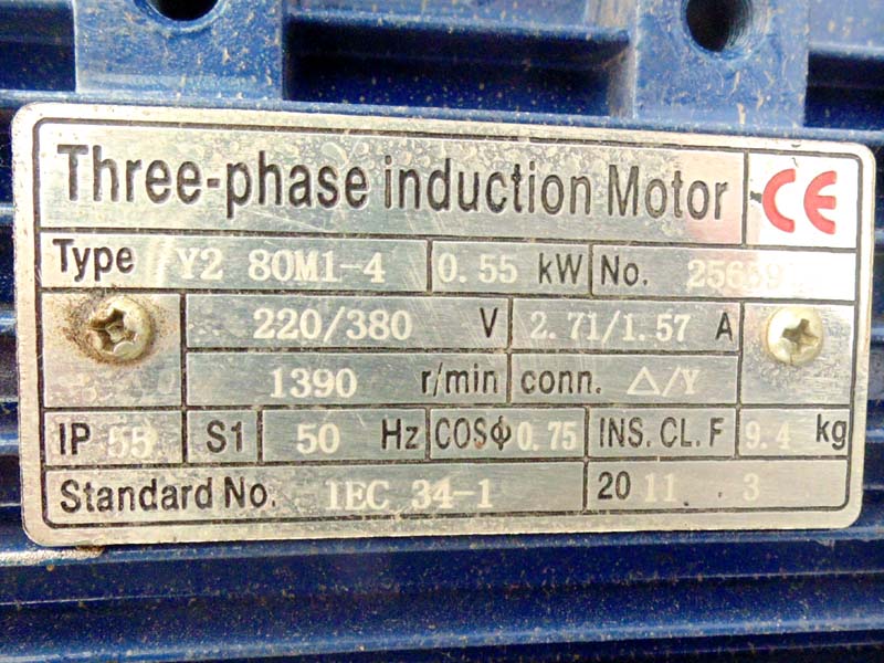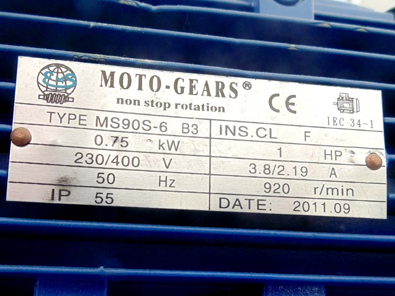 Snaga motora transportne trake: 0,55 KW (0,75 KS), brzina 1390 ob/min.