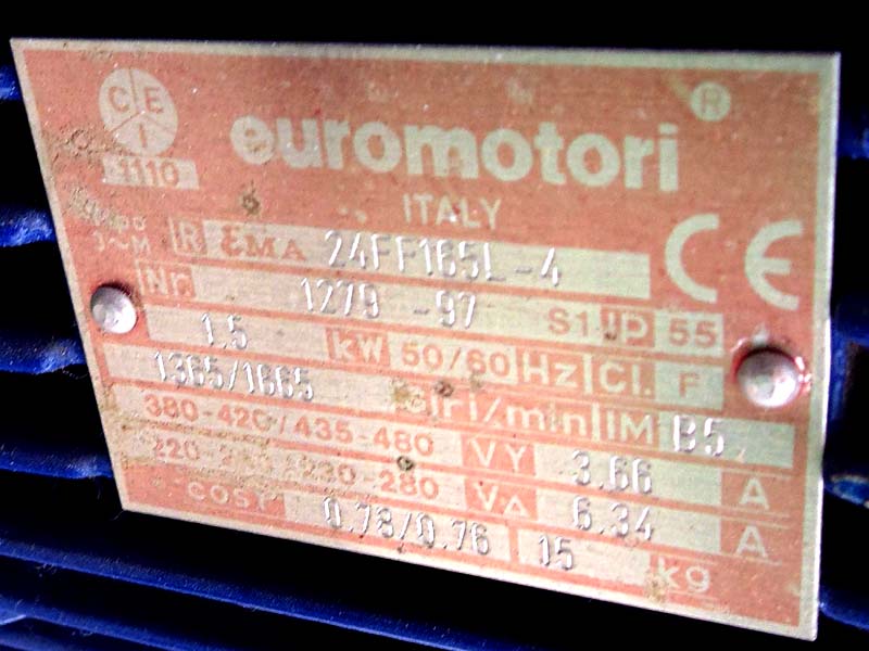 Snaga motora: 1,5 KW, brzina 1335 ob / min.